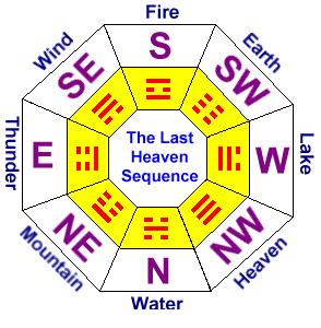 This trigram arrangement is `picture perfect' in that the opposite trigram shows a relationship to each other. So you have: Heaven to Earth; Wind to Thunder; Water to Fire; Mountain to Lake.
