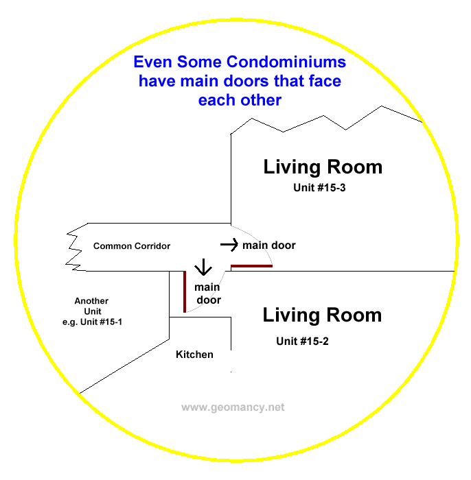 a. There are two units with the main door is next to each other. While the other two units on the same block face each other directly with only 3 feet space between them! Call this condo living! Here, tolerance is needed.